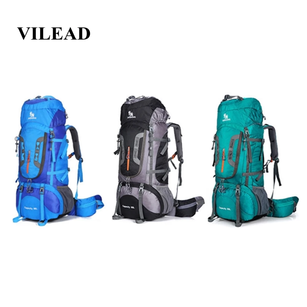 Good Price Vilead 80L Large Capacity Adjustable Travel Backpack Waterproof Nylon Camping Hiking Bag Unisex Bre